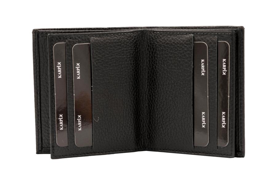 Deri Erkek Cüzdanı Dik Orta Boy Kelebek Model 4201 SİYAH
