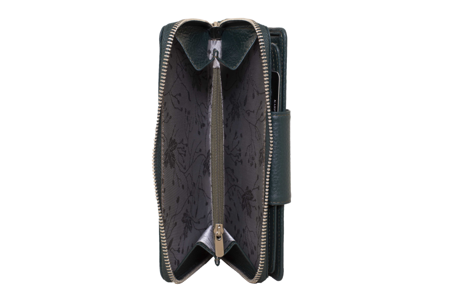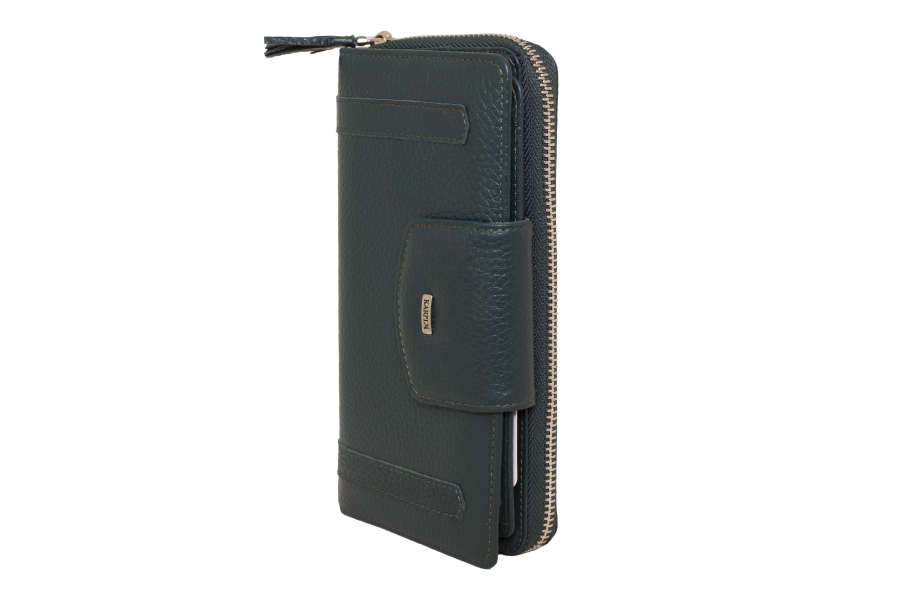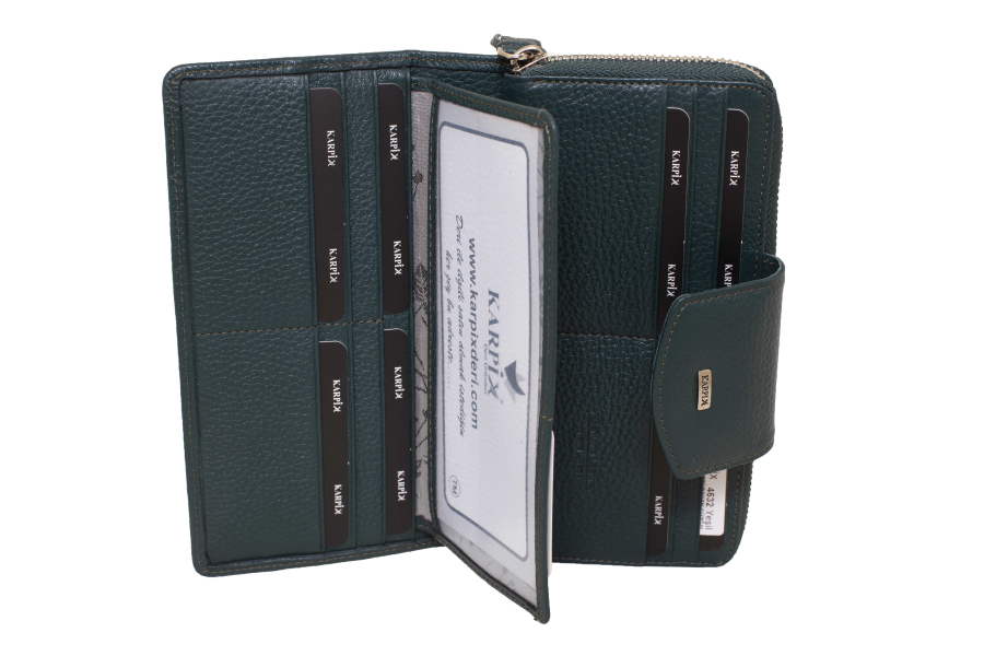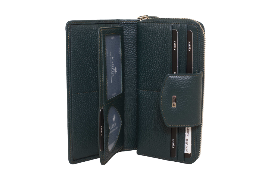 Deri Kadın Fermuarlı Büyük Boy Cüzdanı 4632 YEŞIL